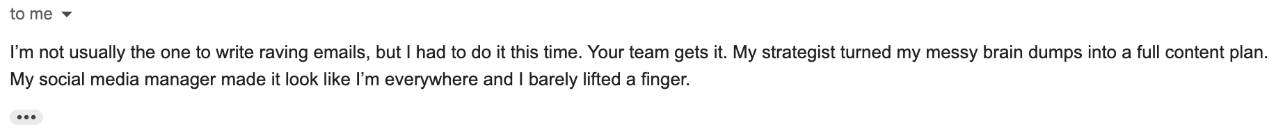 Results vary – but across industries, founders gain stronger authority, more inbound opportunities, and a clearer digital presence. We’re focused on business outcomes, not chasing trends or follower count.