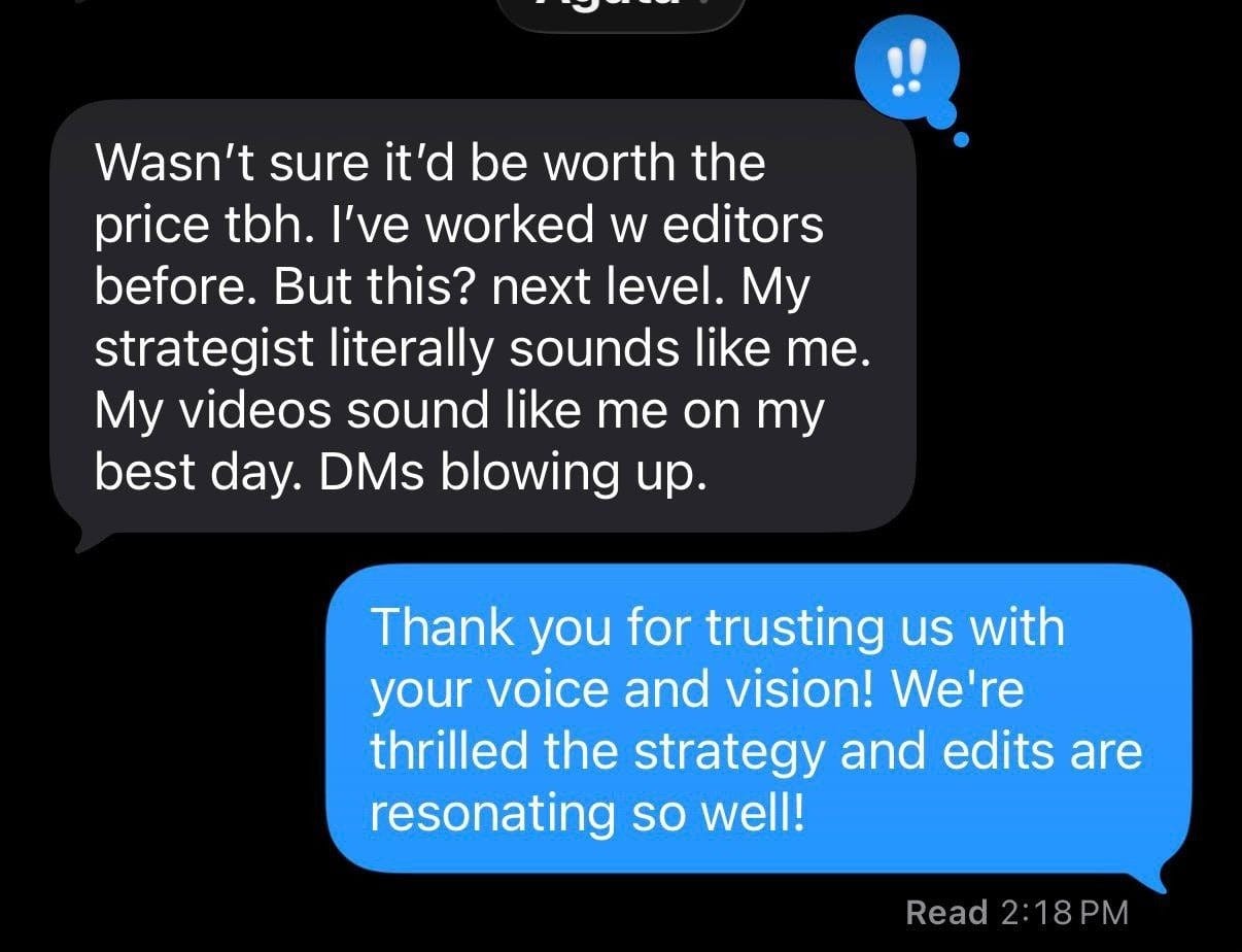 We handle strategy, scripting, editing, workflows, and posting. You only capture your thoughts & film.